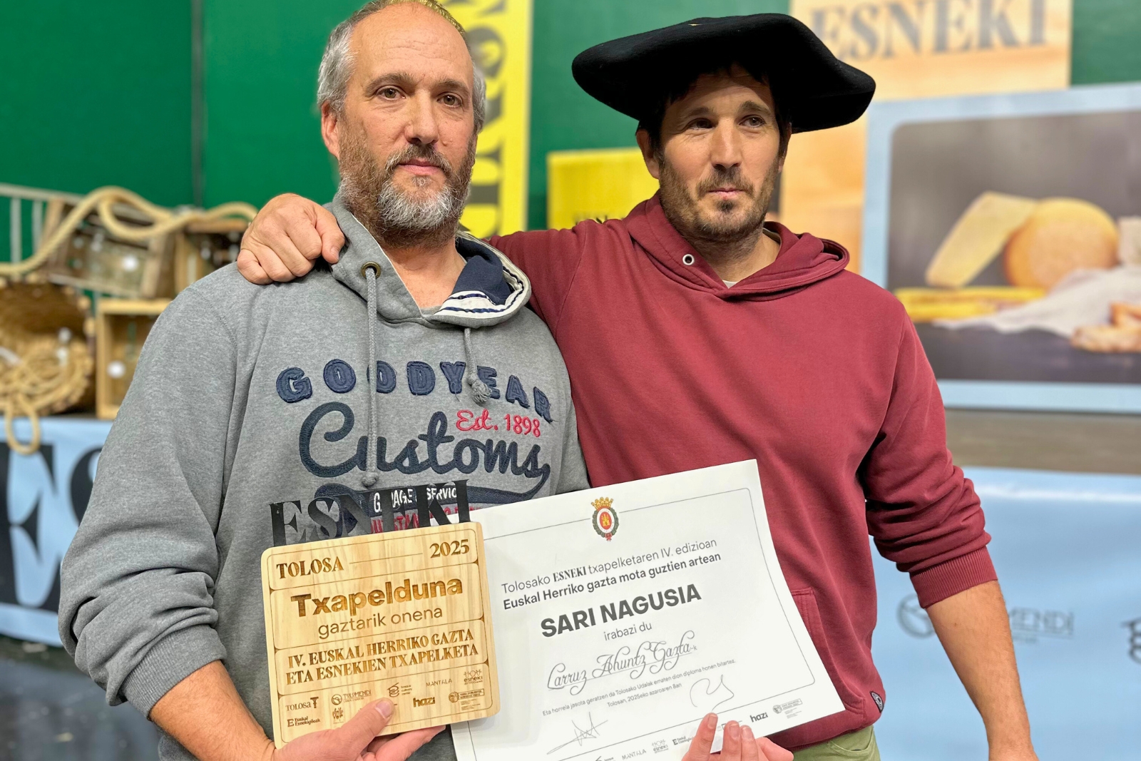 Entre las y los ganadores de cada categoría se ha elegido al “campeón de campeones”, es decir, al queso reconocido como el mejor de Euskal Herria. El galardón ha sido para el queso de cabra Larruz, elaborado por la quesería Larruz de Markina Xemein. Los hermanos Iban y Gorka Muniozguren han recibido con emoción el trofeo, el diploma y la tradicional txapela. (La lista completa de ganadores y ganadoras por categoría se incluye al final de esta nota).