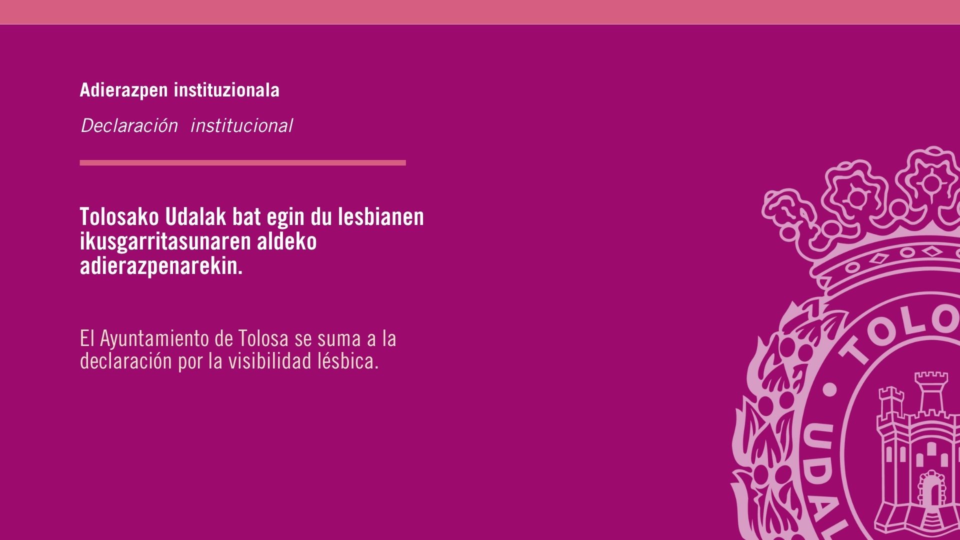 El Ayuntamiento de Tolosa se suma a la declaración a favor de la visibilidad lésbica