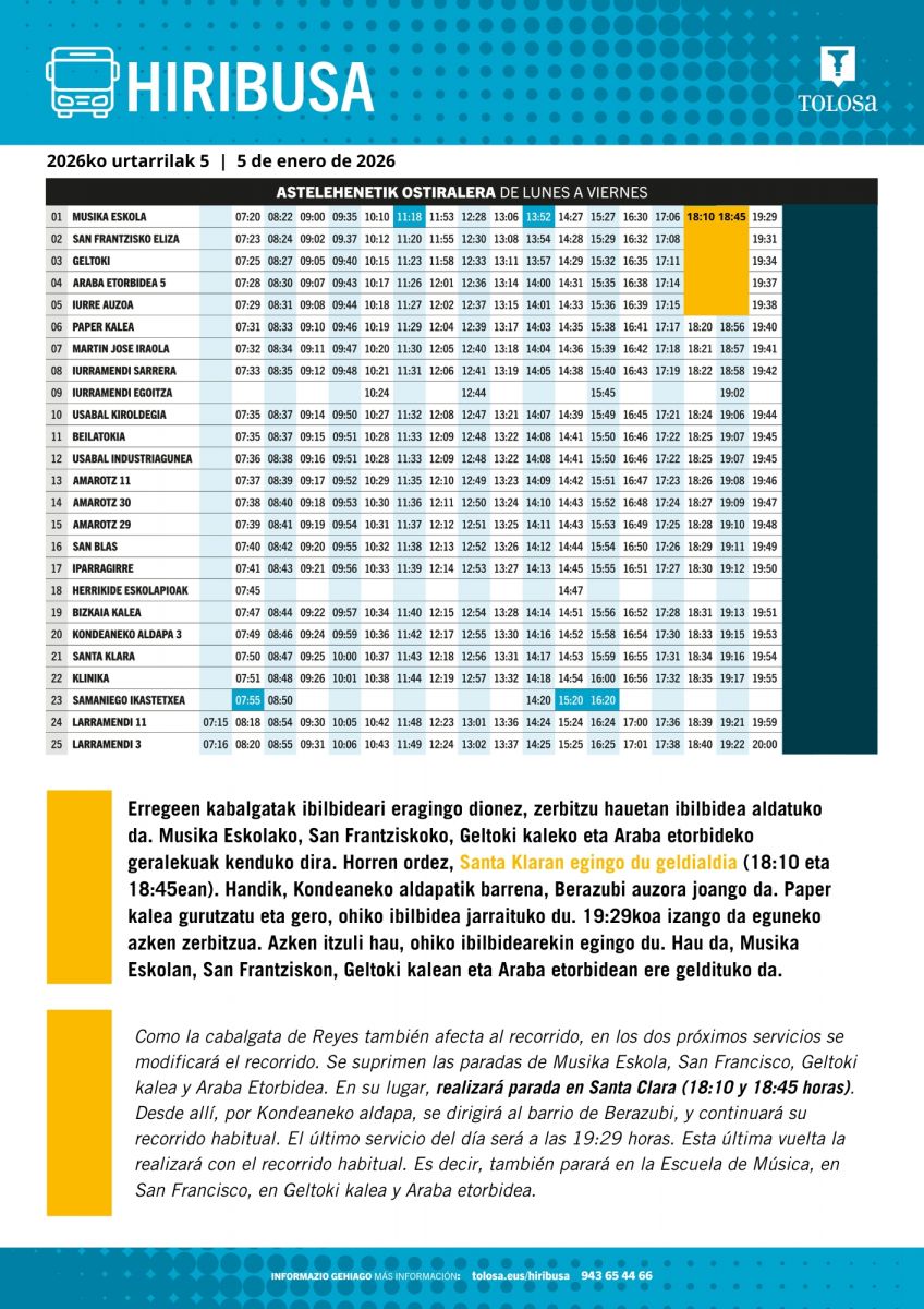 • Por su parte, la Mancomunidad de Tolosaldea realizará cambios en el servicio de recogida de residuos y se aplicará un refuerzo durante estos días.