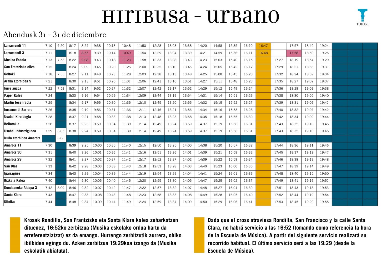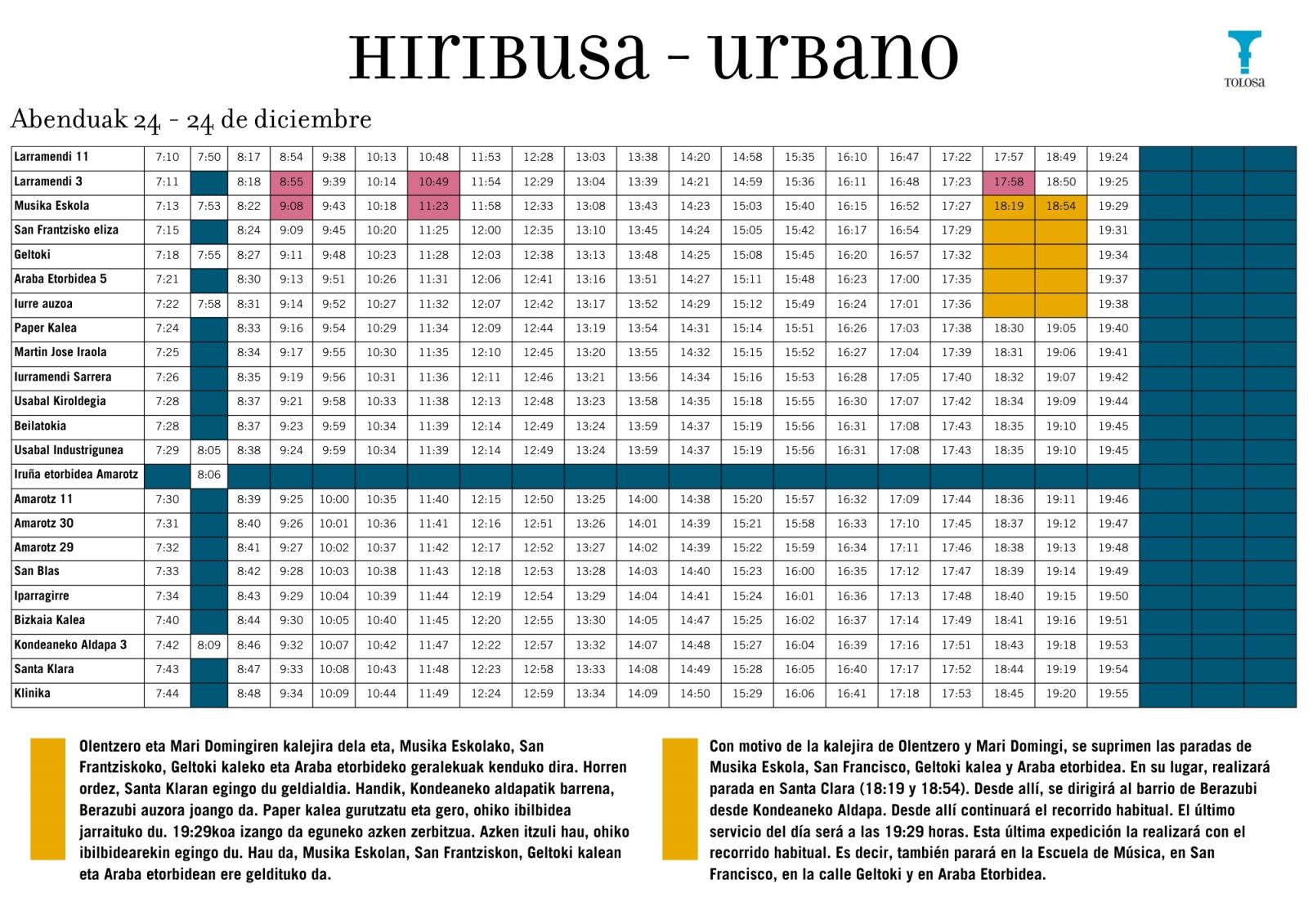 Por otra parte, la mancomunidad de Tolosaldea ha anunciado que, como cada año, se realizarán una serie de cambios en cuanto a la recogida de residuos en las fechas señaladas: