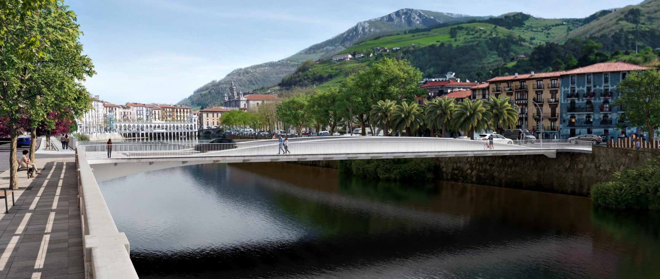 Zutaberik gabeko zubi bat proposatzen du, bao bakarrekoa. Era berean, galtzadaren gainetik egitura bat du, ahalik eta ahalmen hidrauliko handiena lortzeko, eta, horrela, uholde-arriskua murrizteko. Altxaeran dauden bi habe kurbatu nagusitan oinarritzen da, ‘arrain-silueta’ baten antzekoa. Zubia inguruko paisaian integratzen da, eta konponbidea ematen zaio ezkerraldeko espazio faltari.