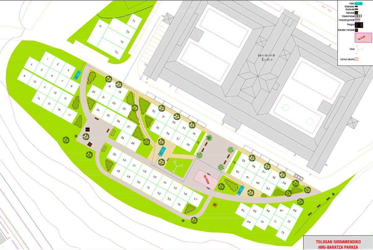 Parkeak 80 baratze ditu, nahiz eta guztiak ez diren zozketa bidez esleitzen. Hau da banaketa: